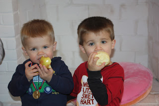 We love when Nana and Papa visit....I have to wait to tell the kids until the morning they plan to get here because the questions are nonstop from the moment they know they are coming until they get there. Everyone knows that Myles LOVES his Papa. Papa is almost a mythical man in our house. Papa can do NO wrong...EVER!! When in doubt, say that it is how papa would do it, wear it, or eat it and Myles will do it. Now that Ty is old enough to show a preference and personality I knew it was going to be interesting to see who he "picked" as his favorite. I noticed that whenever Ty calls someone on his fake phone it's either Daddy or Nana so she at least had a chance. I just wasn't sure with all the Papa talk that Myles does if Nana would get a fair chance. Turns out the boys made it nice and easy. Myles is a Papa's boy and Ty is a Nana's boy. At one point Ty looked at dad and pointed to the other room and said, "go". He wanted his Nana. I am just happy that both mom and dad take it in stride and I don't have to try to keep the peace. They are kids and they have a mind of their own. Sorry if you are the one they don't like as much.